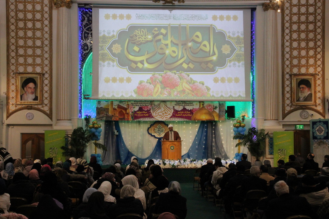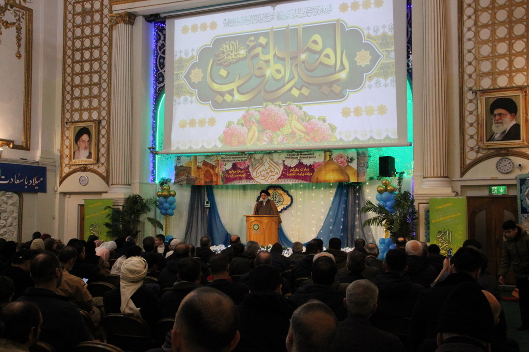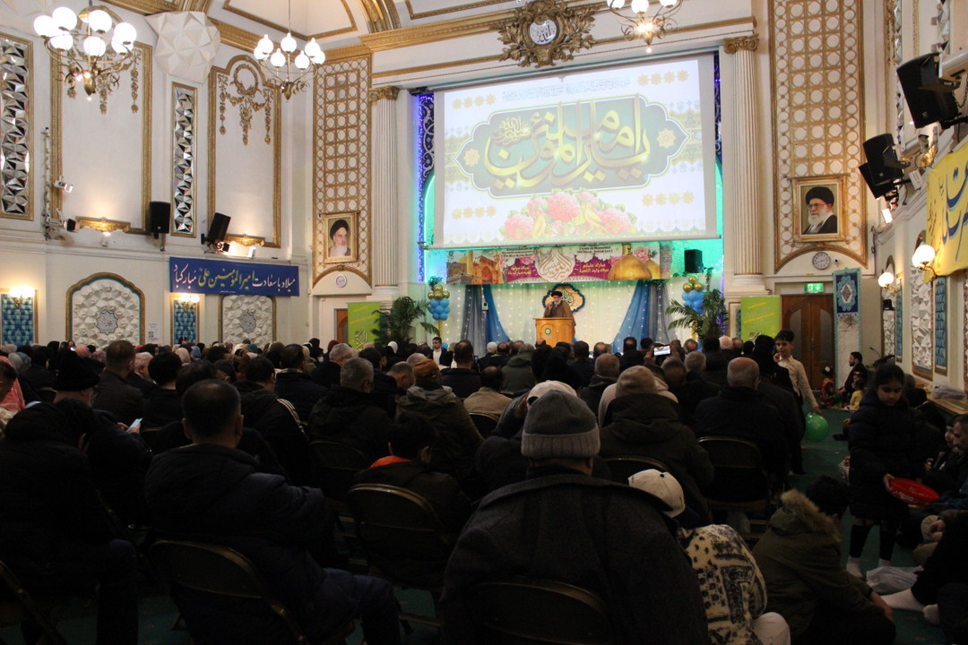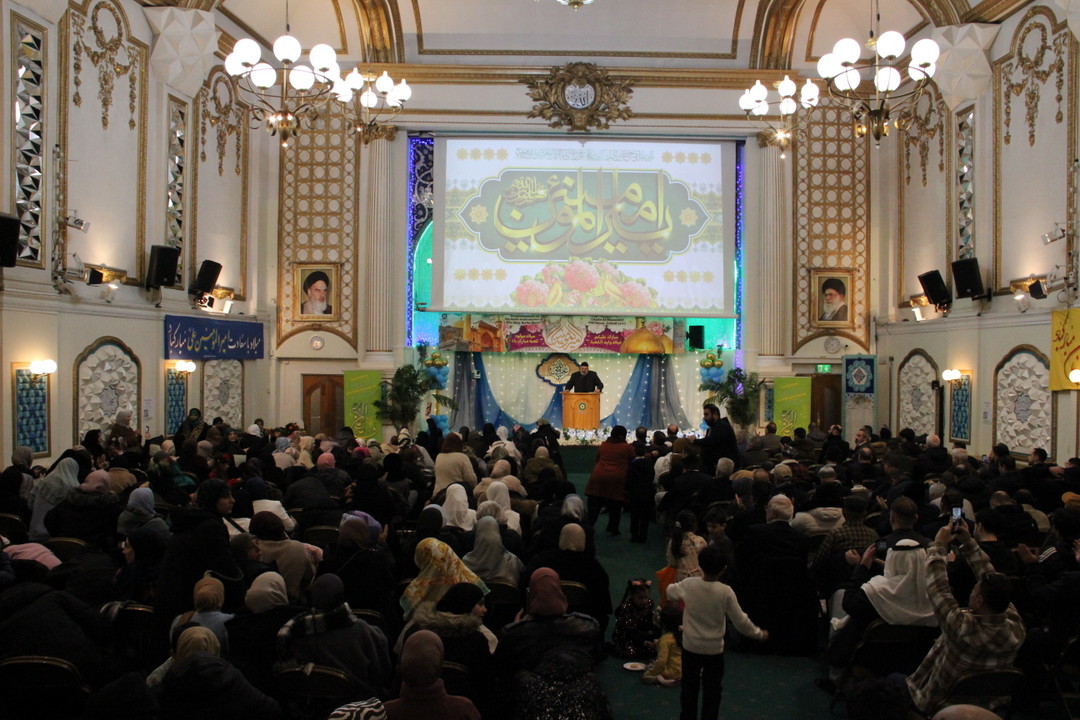 On January 14, 2025, the Islamic Centre of England hosted a grand celebration marking the birth of the Commander of the Faithful, Imam Ali (as). Hundreds of Shia Muslims from across London gathered for the event, which was held in three languages: Arabic, English, and Persian. The atmosphere was filled with spiritual fervor as recitations of the praises of Imam Ali (as) were presented in Arabic and Persian, leaving attendees immersed in devotion and reverence.