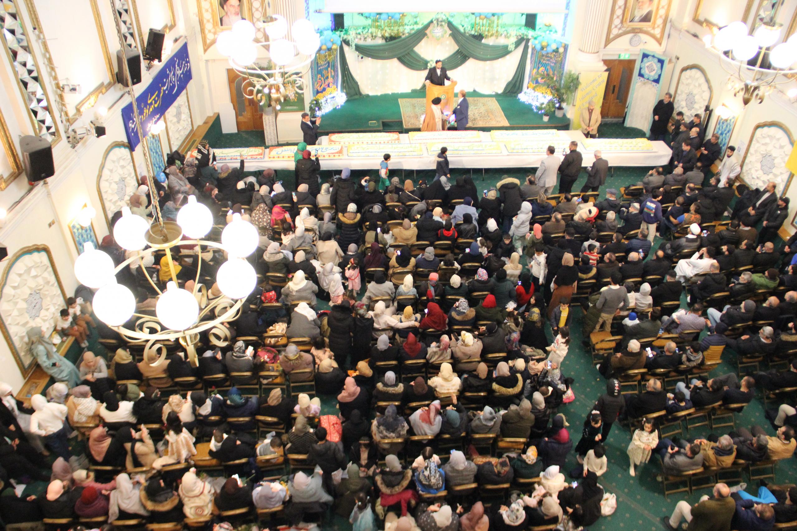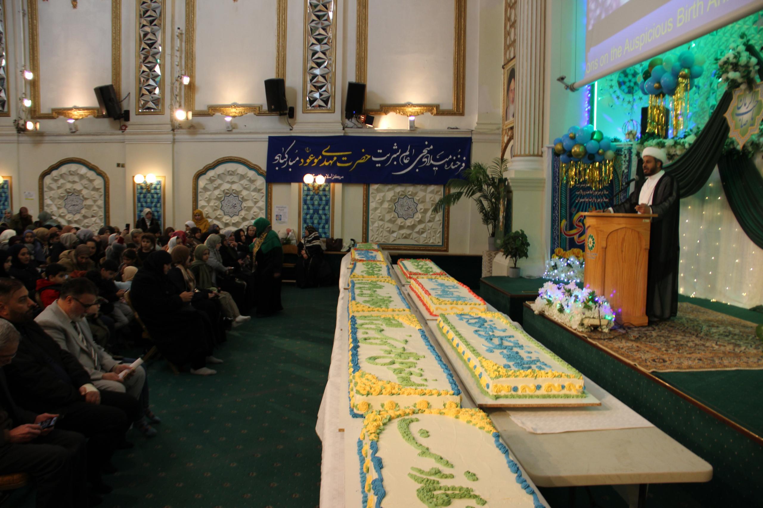The main hall of the Islamic Centre was filled to capacity well before the programme began, with many attendees spilling into the hallways and the courtyard outside, eager to partake in the grand festivities. The event featured an array of activities, including captivating video presentations, an engaging Kahoot competition, the unveiling of an 18-metre-long birthday cake in honour of Imam Mahdi (af), as well as melodious recitations of eulogies and anthems in Arabic and Persian. The presence of children, whose joyful expressions illuminated the evening, added a special charm to the occasion.