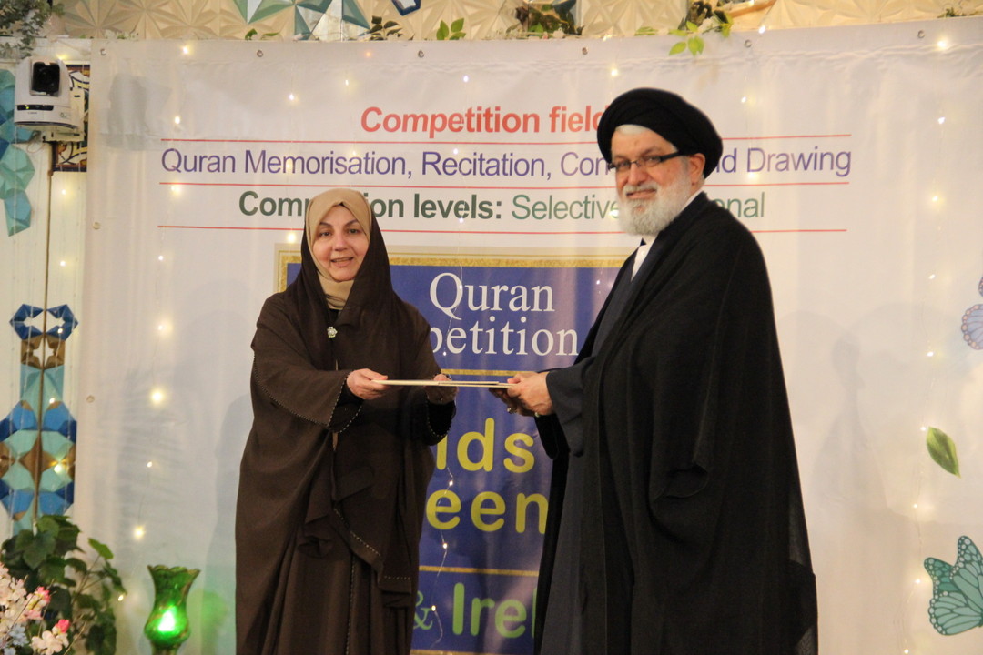مراسم اختتامیه این مسابقات عصر روز شنبه ۲۶ آوریل 2025 با تلاوت آیاتی از قرآن کریم، پخش نماهنگ تواشیح، و ارائه گزارشی از روند برگزاری مسابقات برگزار شد. حجتالاسلام والمسلمین سید هاشم موسوی، امام مرکز اسلامی انگلیس، طی سخنانی ضمن شکرگزاری از برپایی این محفل قرآنی، قرآن کریم را دریایی بیکران دانست که هر کس به میزان ظرفیت خود می تواند از آن بهره ببرد. وی با اشاره به حدیثی از پیامبر اکرم (ص)، بر اهمیت تربیت فرزندان با محوریت انس با قرآن تاکید کرد و نقش والدین در این مسیر را بسیار مهم برشمرد.